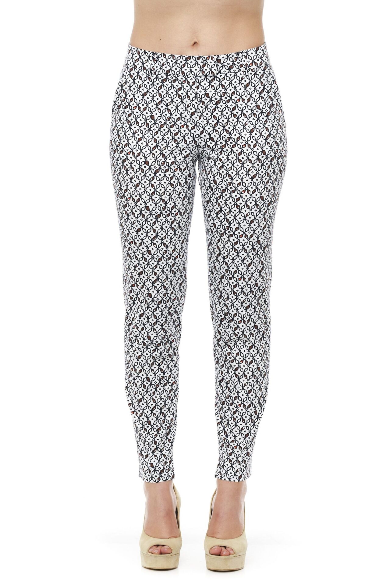 Straight Leg Trousers With All-over Geometric Pattern. Regular Waist Two Front Pockets. Two Back Thread Pockets With Buttons. Small Slits On The Bottom. Zip Closure And Hidden Hooks. Regular Fit.