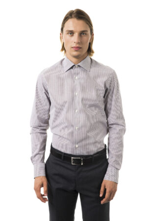 Embroidered Slim Fit Shirt With Lines. Medium Collar