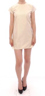 Beige Cap Sleeves Shift Mini Dress