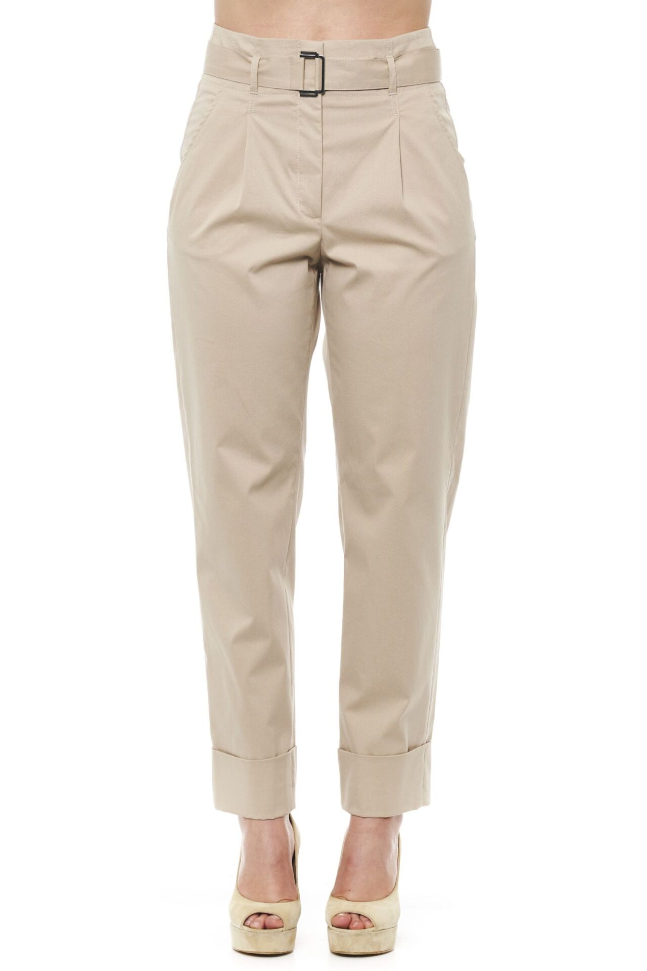 High Waisted Trousers With Adjustable Waist Belt. Two Pockets On The Front And Two Thread Pockets On The Back. Pences. Folded On The Bottom. Closure With Zip And Hidden Hooks. Soft Fit.
