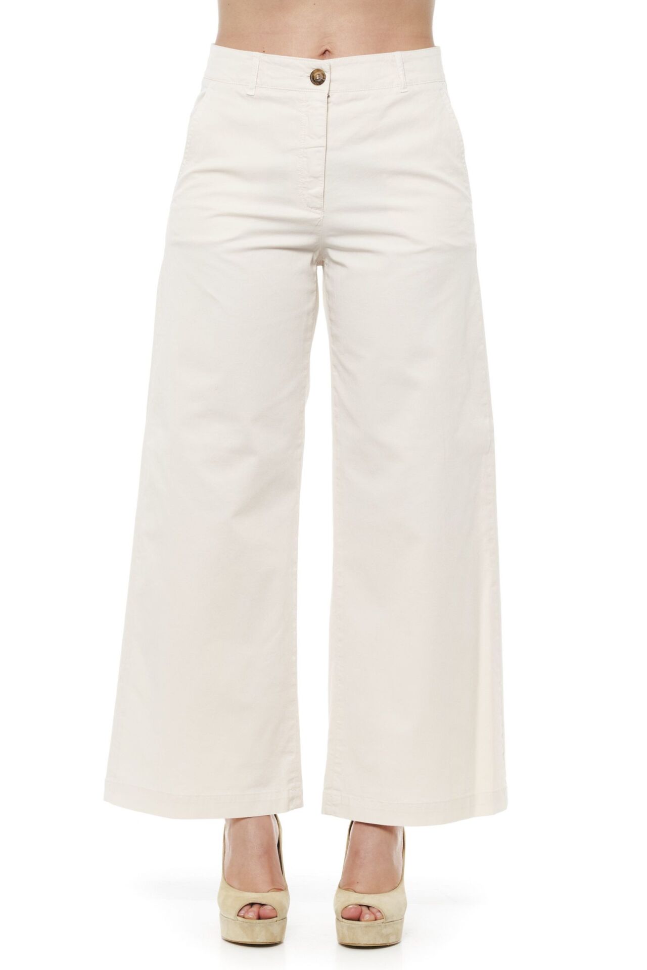 Wide Palazzo Trousers. High Waist. Two Side Pockets And Two Back Pockets. Zip And Button Closure. Wide Fit.