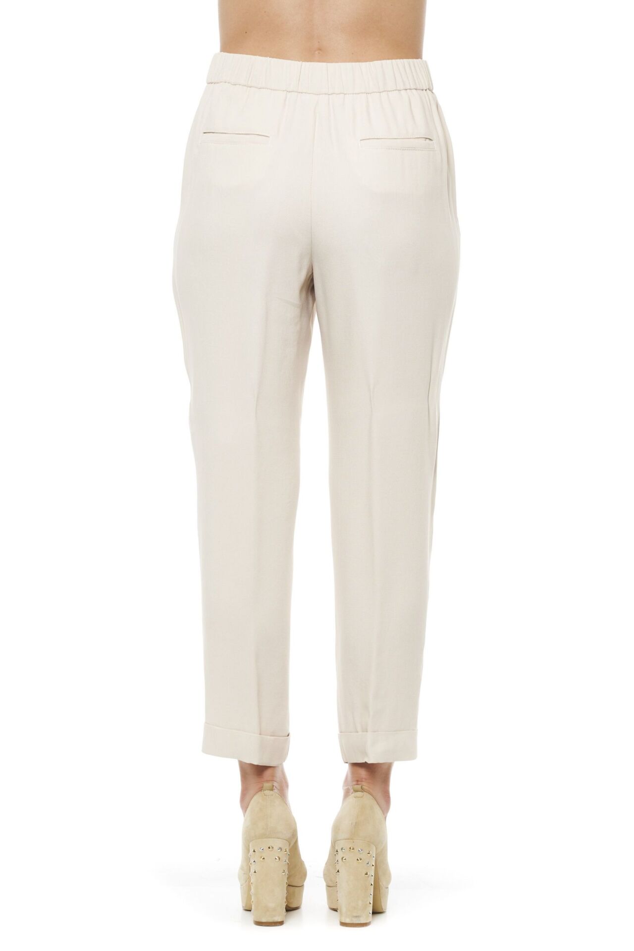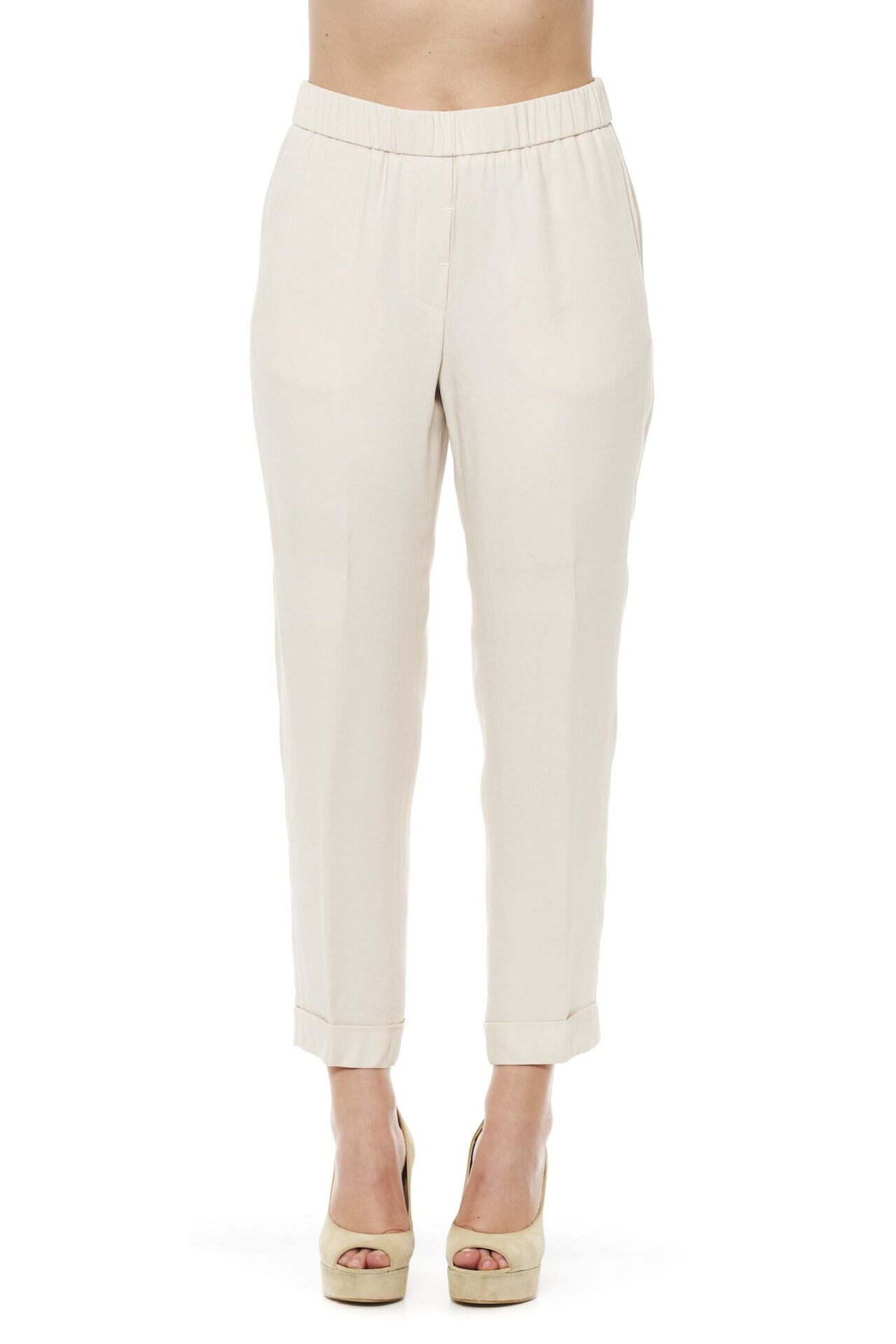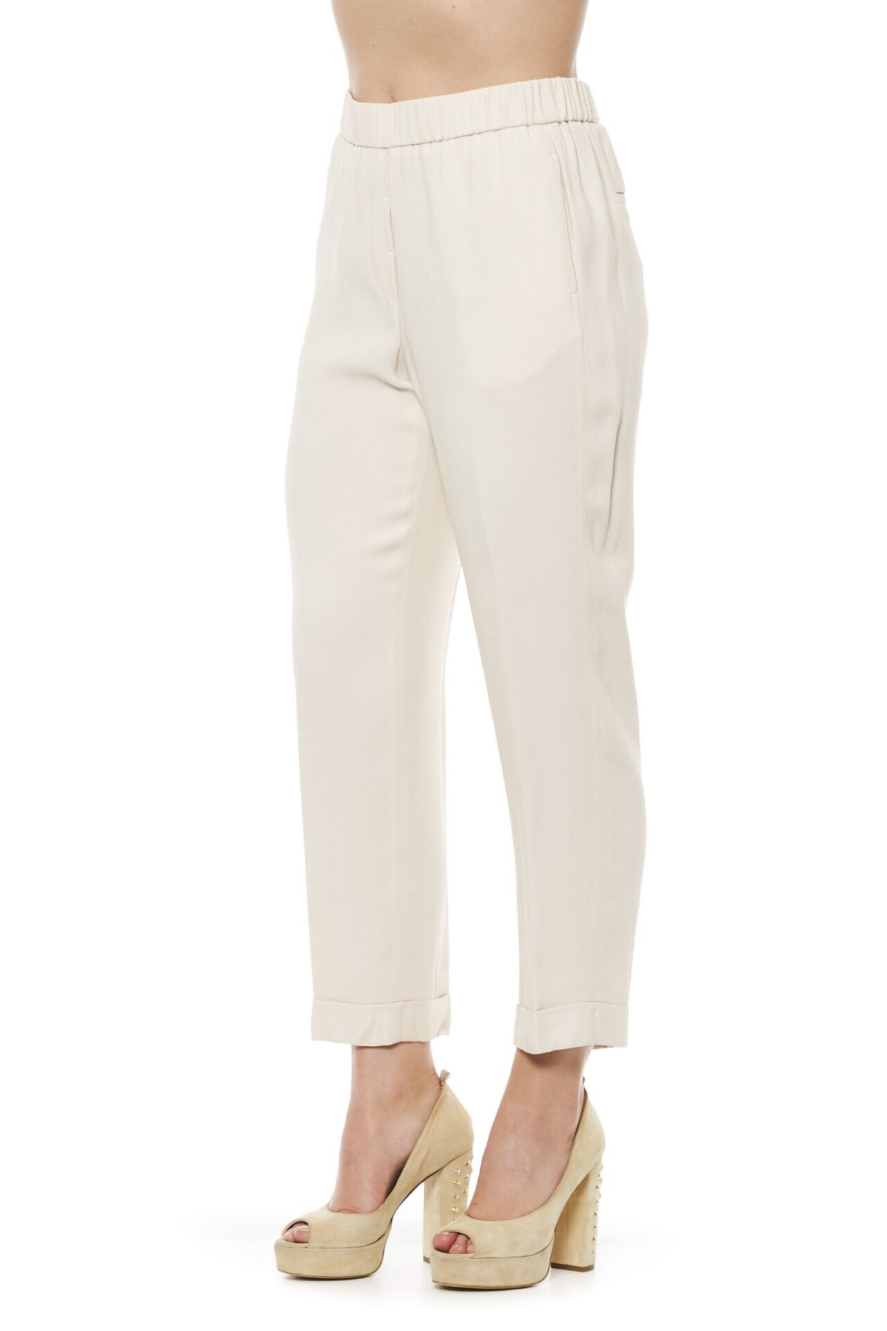 Regular Waisted Trousers With Elastic Band. Two Side Pockets And Two Back Thread Pockets. Fixed At The Bottom. Soft Fit.