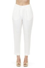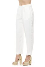Regular Waisted Trousers With Elastic Band. Two Side Pockets And Two Back Thread Pockets. Fixed At The Bottom. Soft Fit.