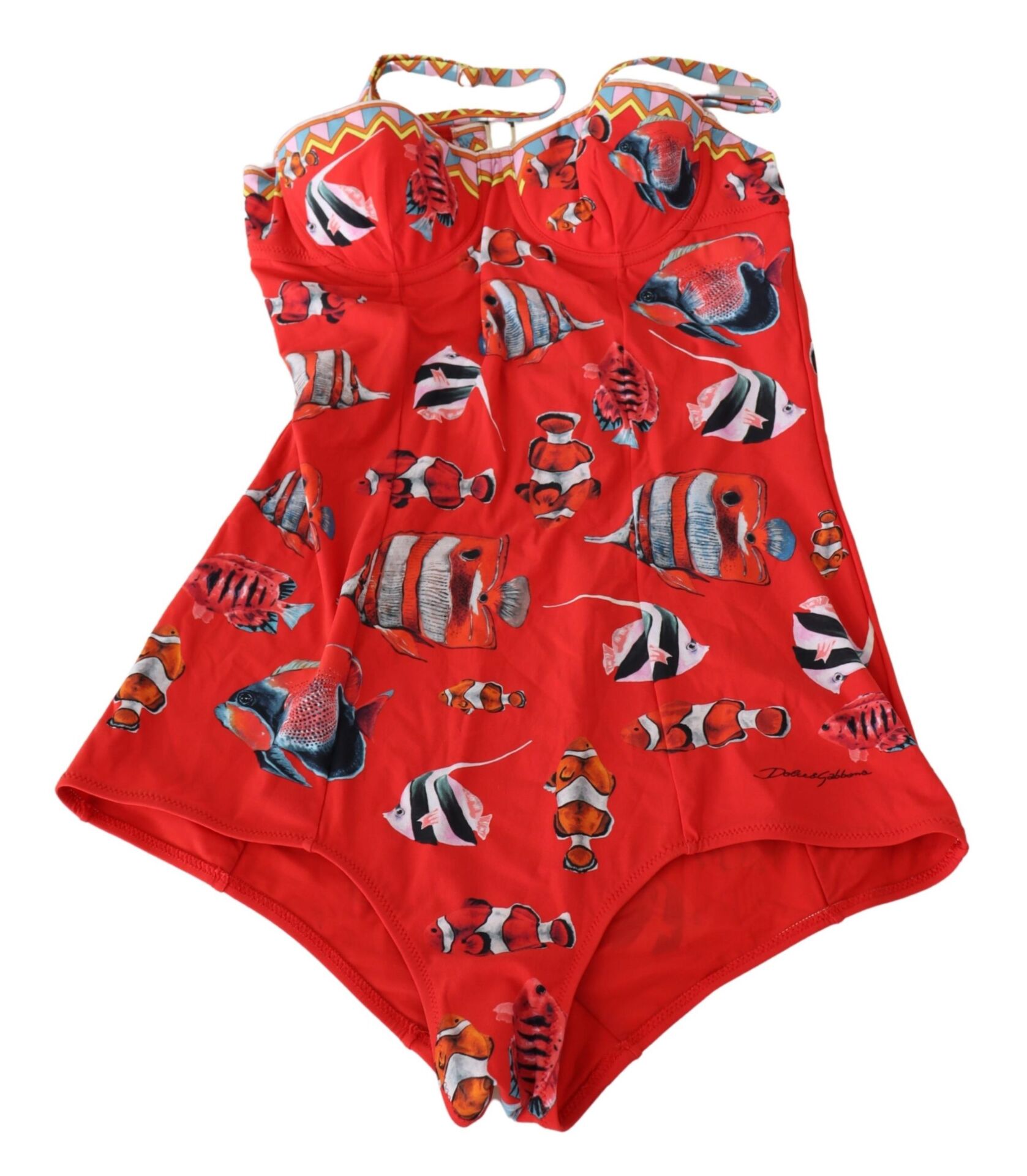 Bikini Red Fish Print One Piece Swimwear Swimsuit Bikini
