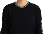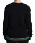 Gorgeous brand new with tags, 100% Authentic Dolce & Gabbana black pullover sweater was adorned with a beige and green DG Queen monogram on the sleeves.