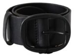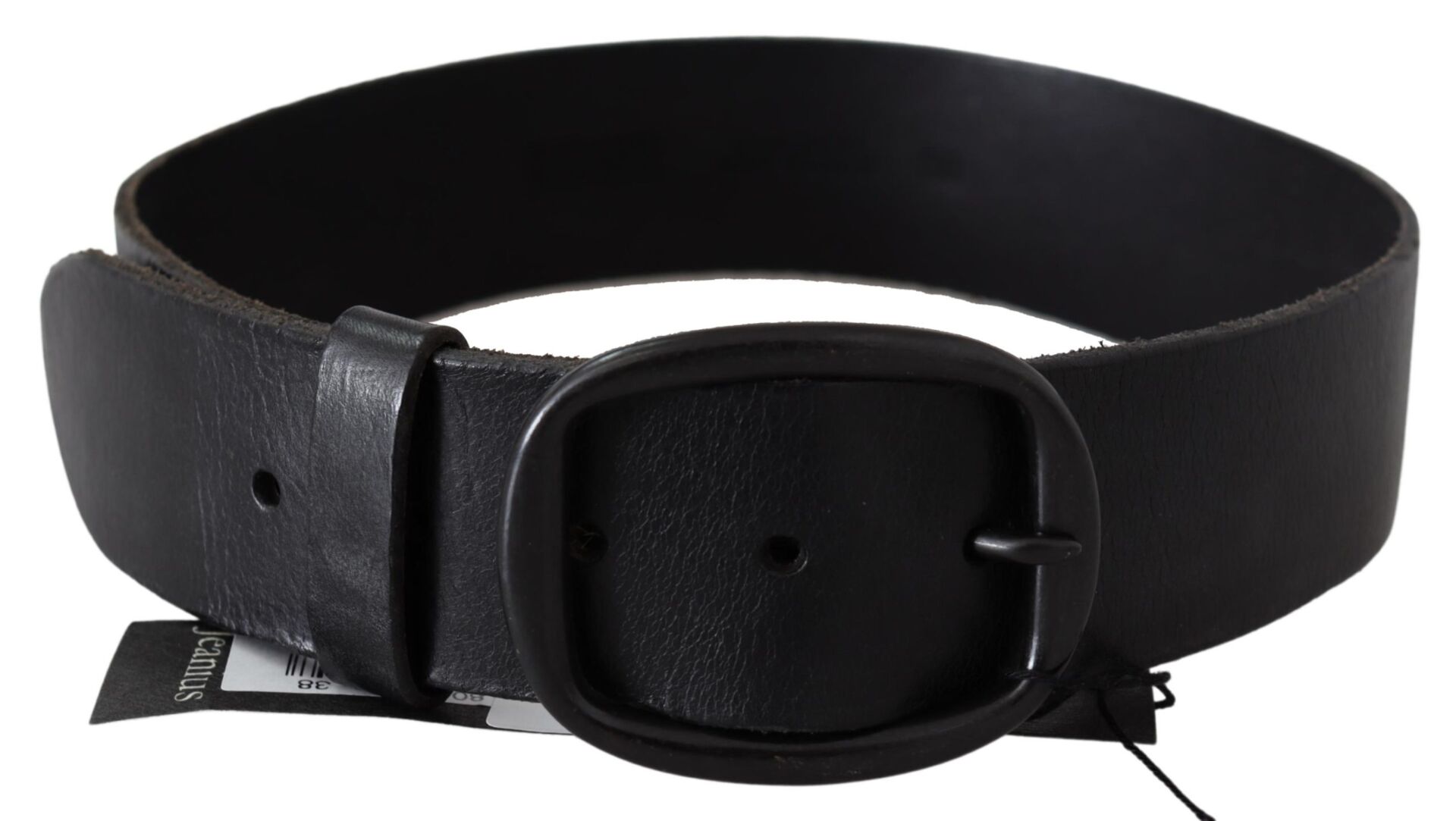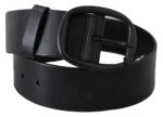Black Leather Thin Gold Metal Chrome Buckle Belt