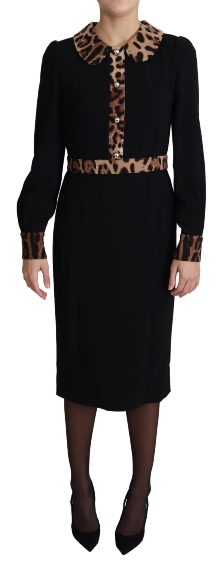 Gorgeous brand new with tags, 100% Authentic Dolce & Gabbana Black and brown dress. Fastened with zip, snap-buttons and hook & eye closure. Embellished with decorative buttons and leopard print. It features long sleeves and split vent on the back.