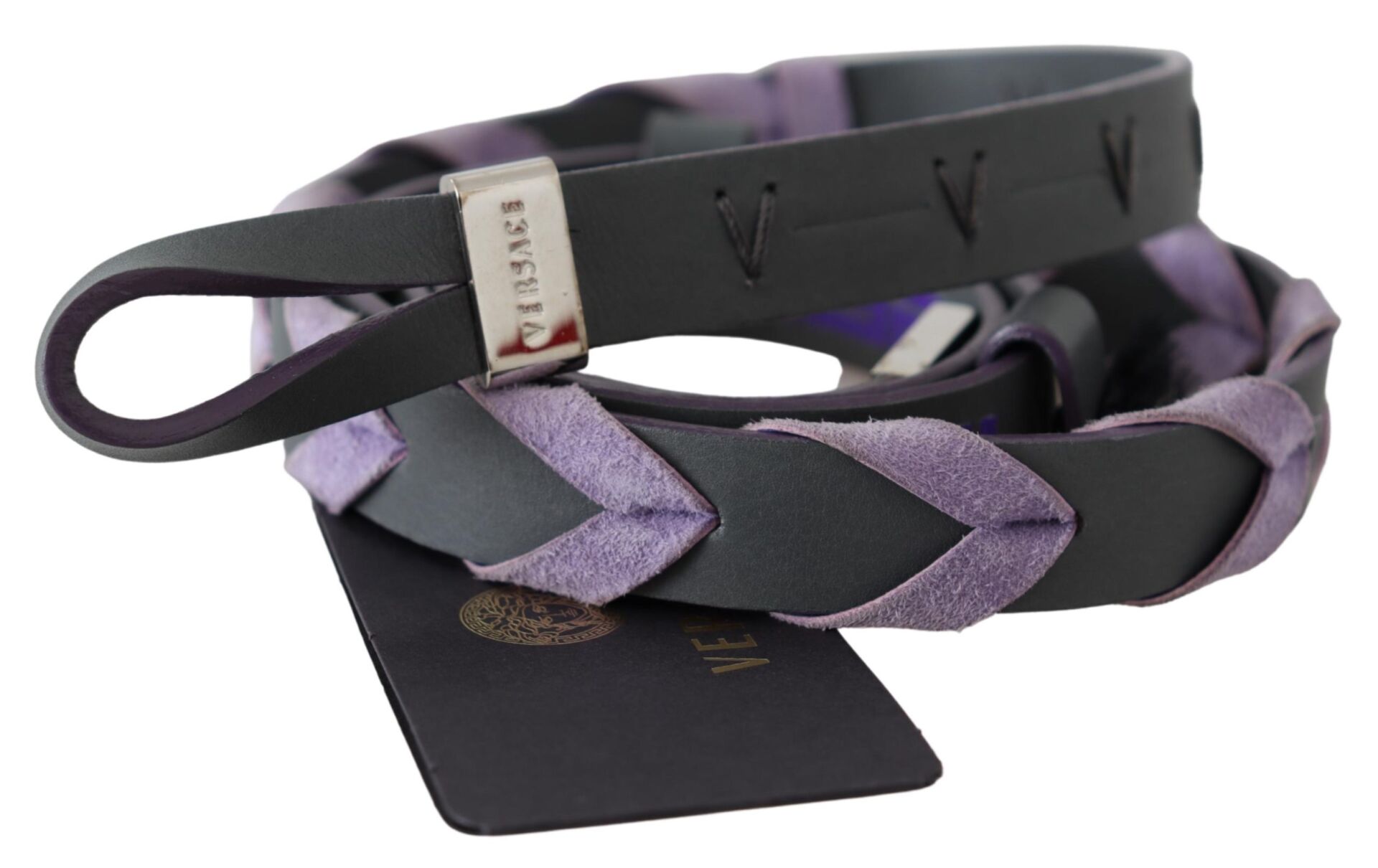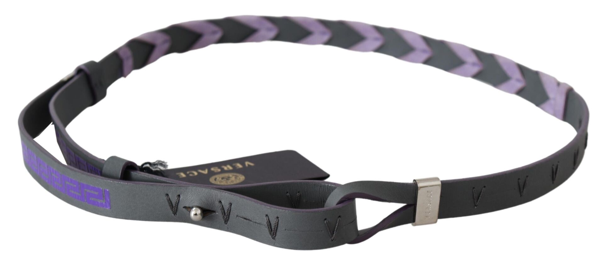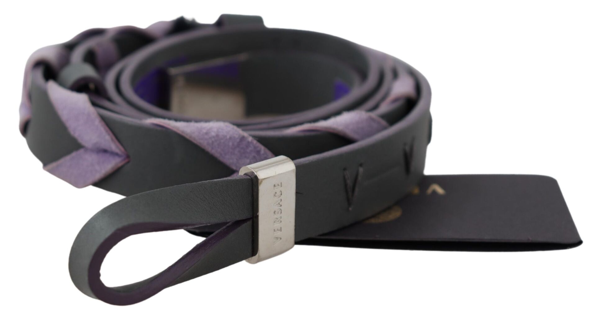 Brown Leather Gold Logo Circle Metal Buckle Belt