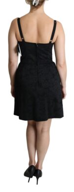 Black Rose Appliqué Sheath Mini Jaquard Dress