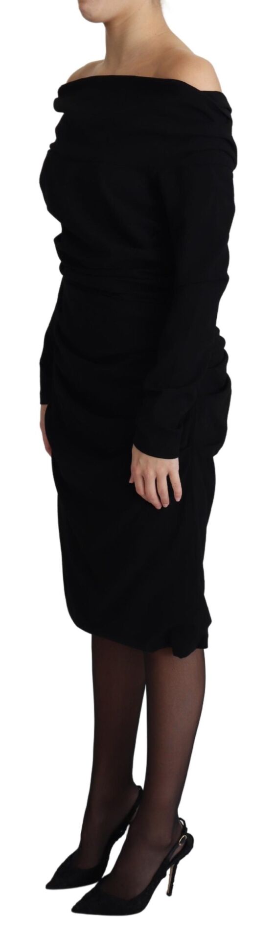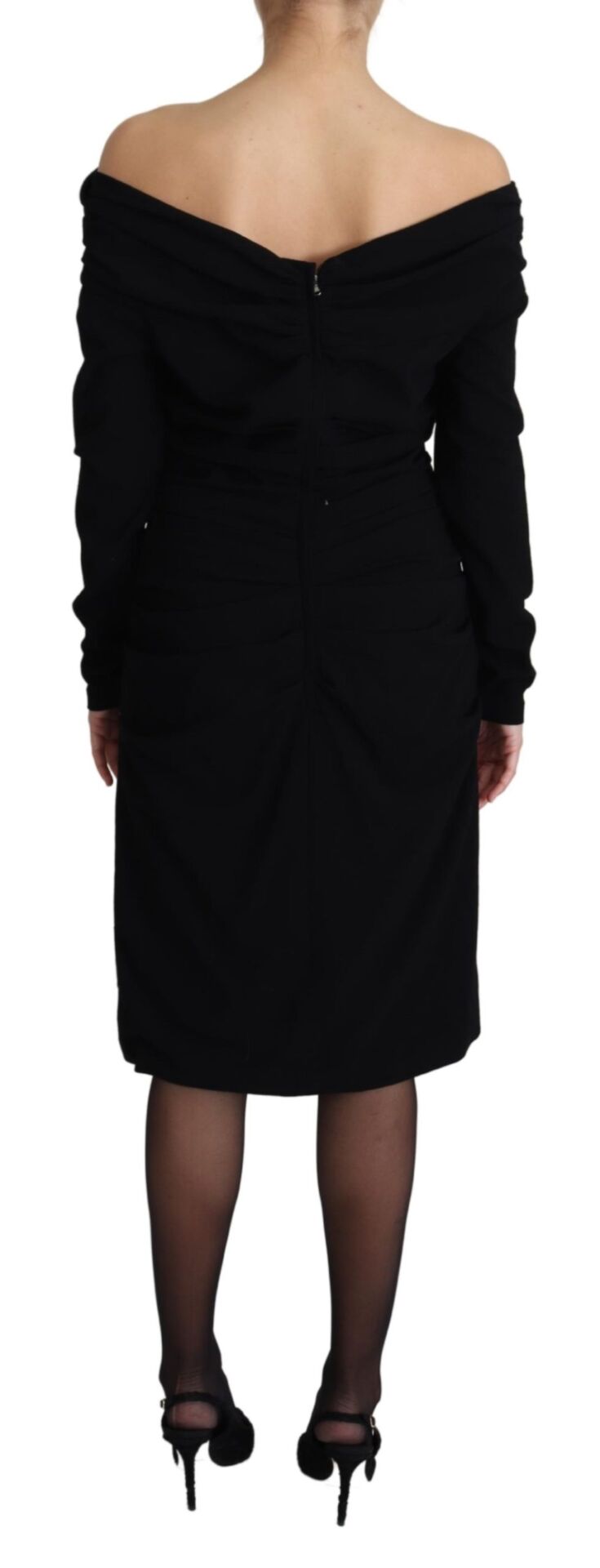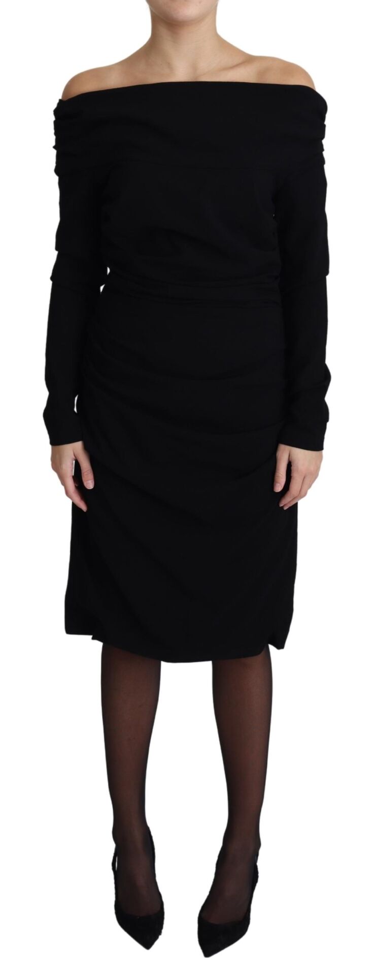 Gorgeous brand new with tags, 100% Authentic Dolce & Gabbana black sheath dress with long sleeves and an open shoulder line.