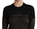 Black Shiny Lurex Lace Insert Pullover Top