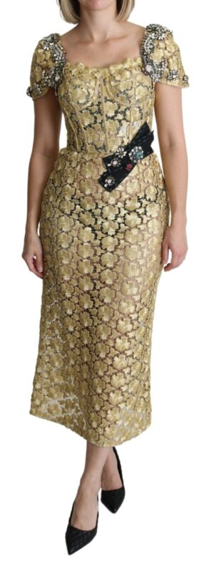 Gold Crystal Embellished Lace Sheath Maxi Dress