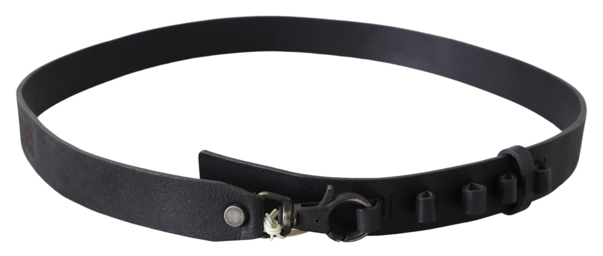 Black Wide Leather Rustic Hook Metal Buckle Belt
