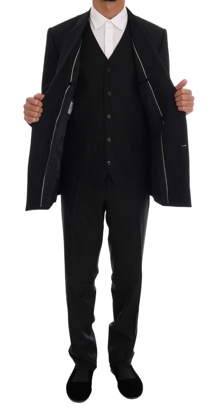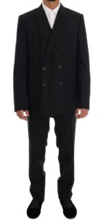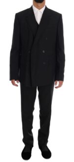 Black Wool Double Breasted Slim Fit Suit
