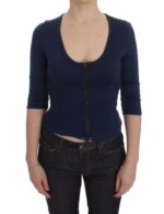 Blue Cotton Top Pullover Deep V-neck Women Sweater