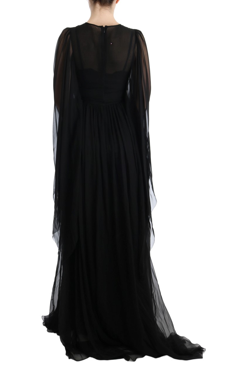 Črna svilena obleka z dolgimi rokavi ITALIA IS LOVE