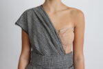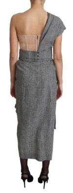 Gray One Shoulder Prince Of Wales Midi Dress