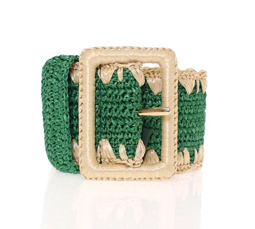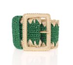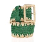 Green Raffia Woven Waist Viscose Wide Belt