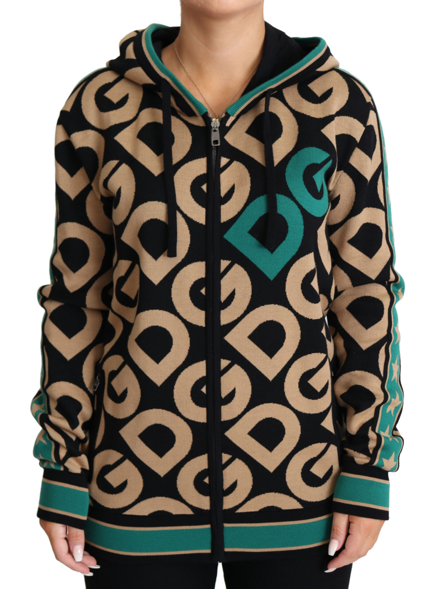 Gorgeous brand new with tags, 100% Authentic Dolce & Gabbana sweatshirt with a voluminous hood with a large diagonal DG Logo motif. For sewing a soft product of a free cut, the masters of the brand used light woolen knitwear. The model is complemented by two side pockets with zippers.