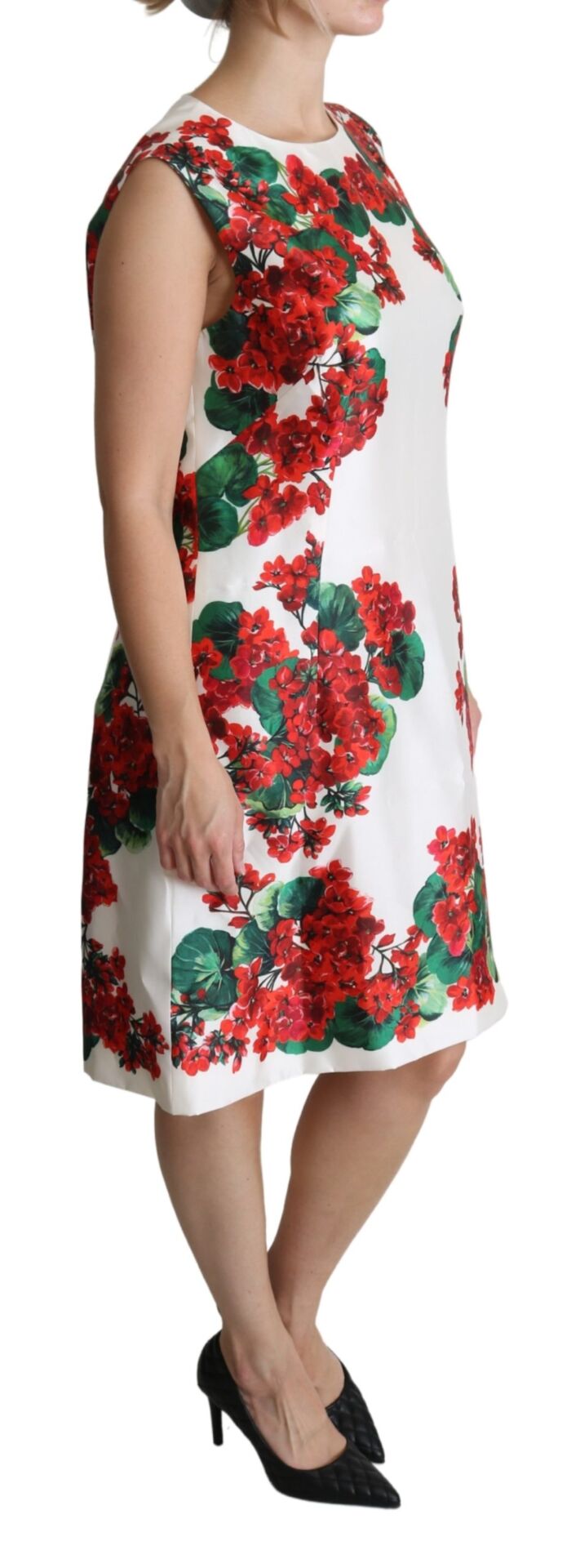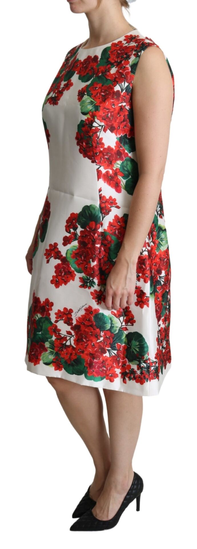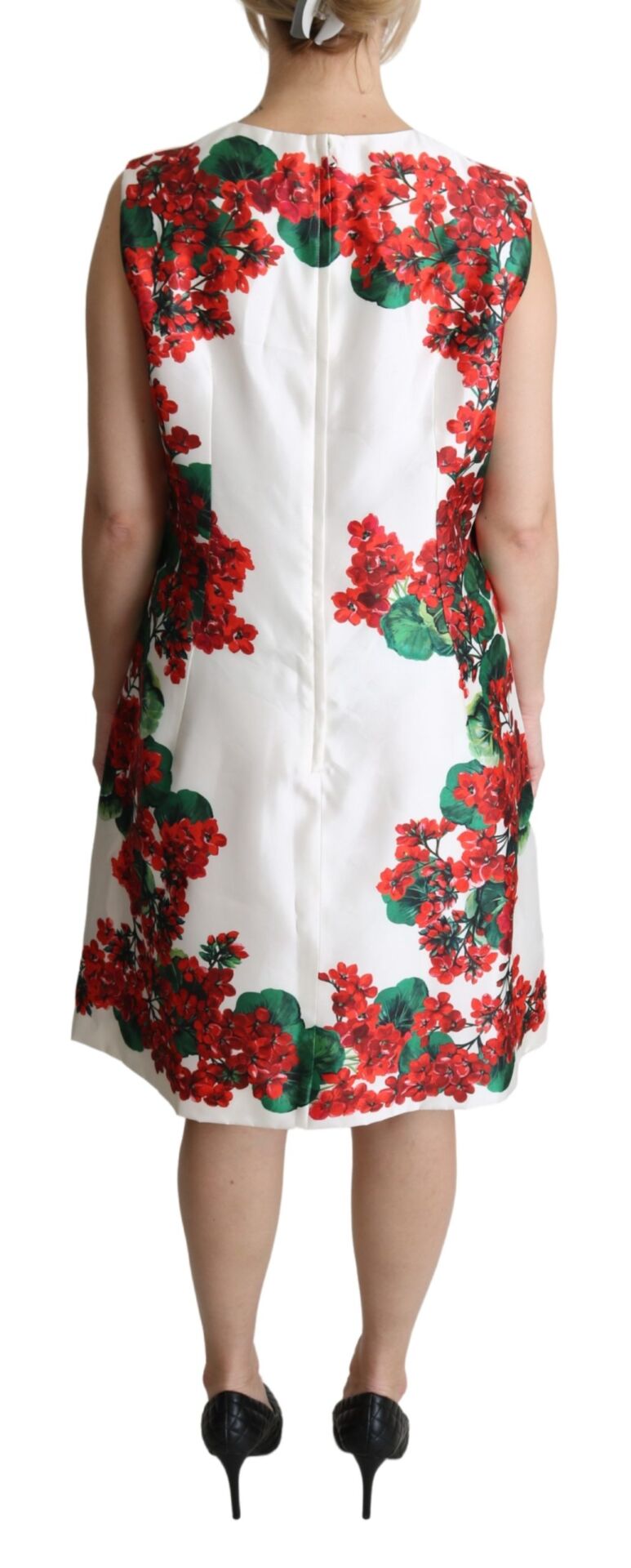 Gorgeous brand new with tags, 100% Authentic Dolce & Gabbana Dress in white floral motif, features fastened zip and a hook. Decorated with a floral print in red and green.