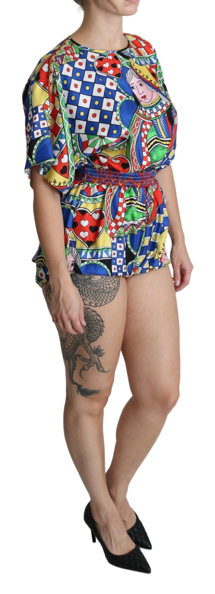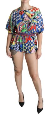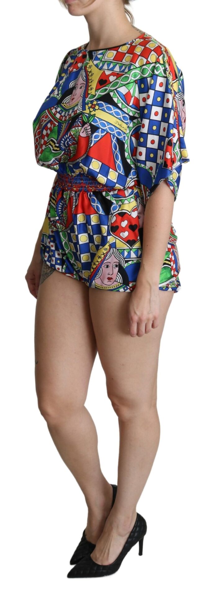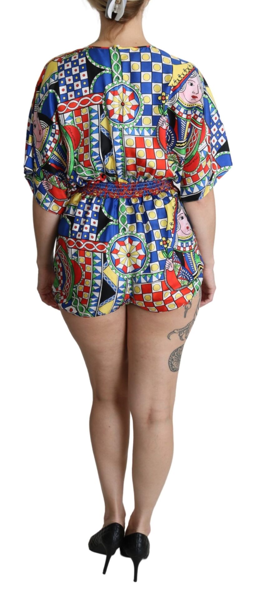 Multicolor Silk Card Deck Carretto Print Romper Jumpsuit