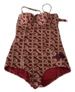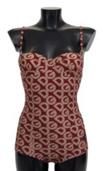 Red Beige Logo One Piece Swimwear Swimsuit Bikini