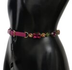 Rdeč usnjeni pas s kristalno zlato zaponko