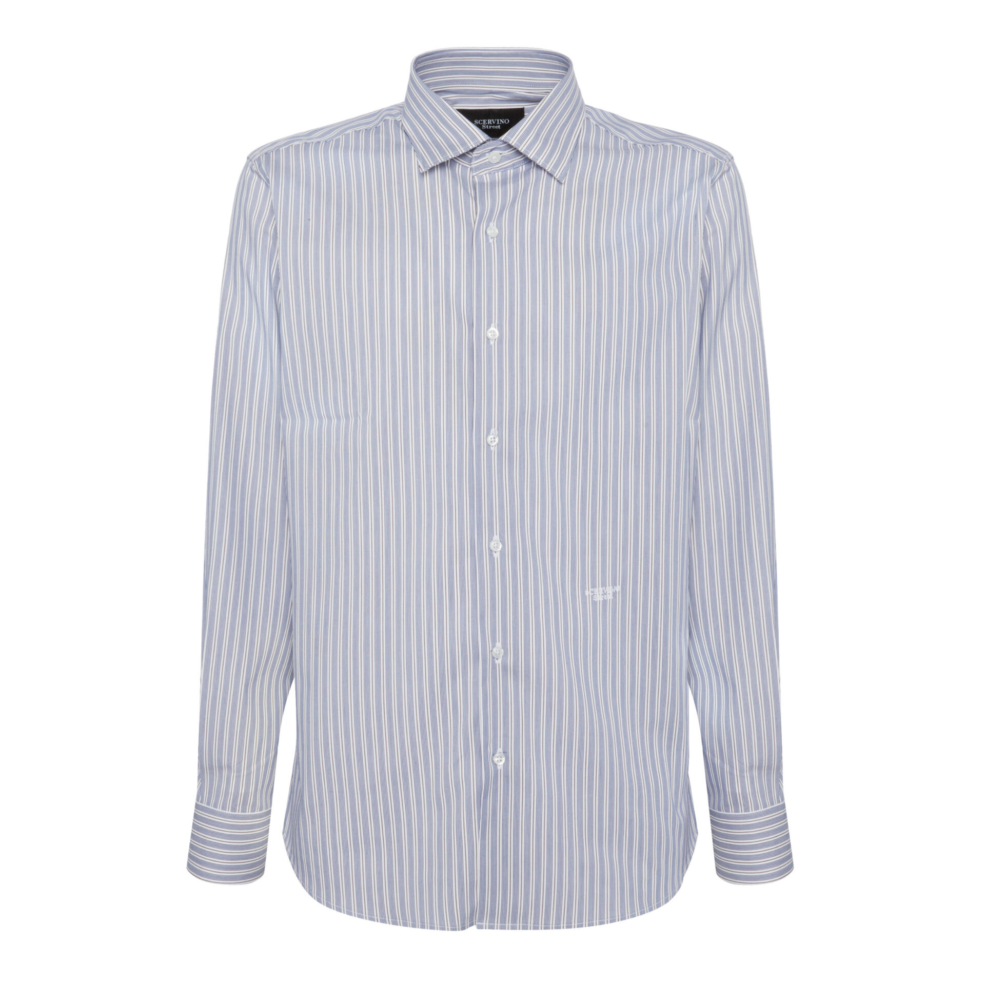 Scervino Street slim fit shirt in cotton, with thin blue stripes, Made in Italy