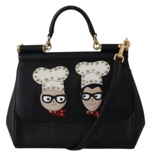 Black Leather #dgfamily Borse Satchel Handbag Purse SICILY Bag