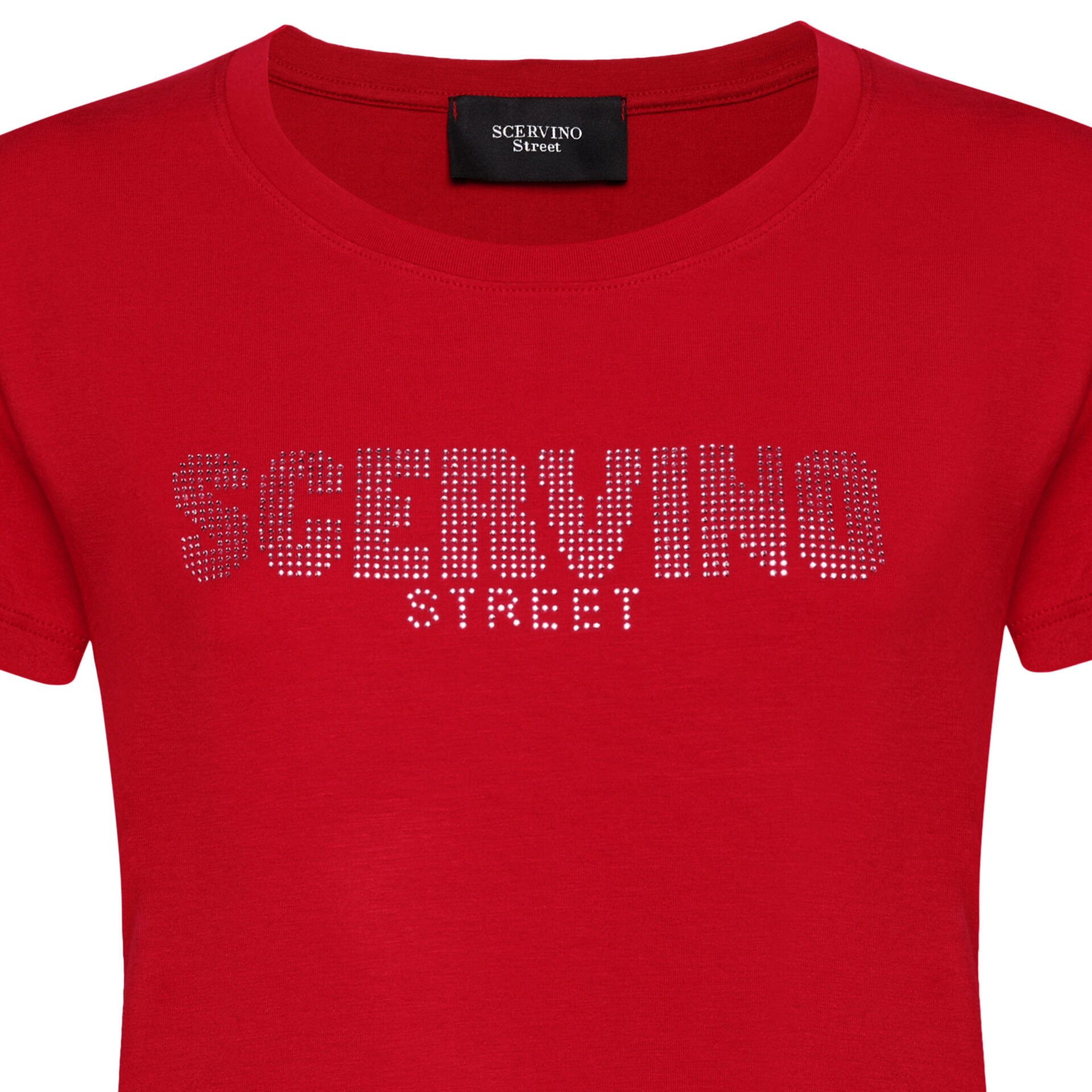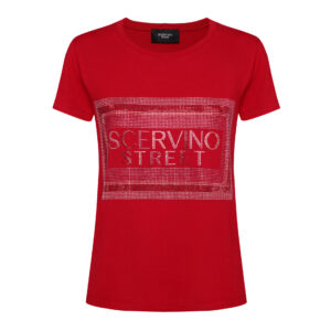 Scervino Street t-shirt, in cotton, red color, brand logo formed by small applied beads. Made in Italy.