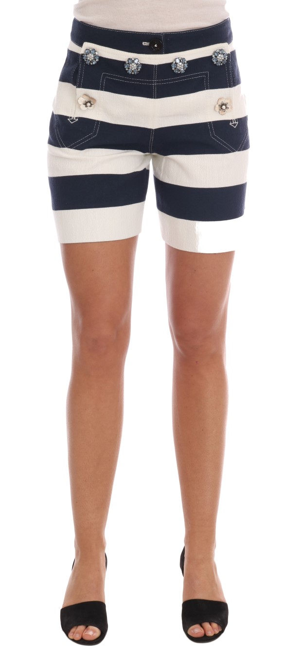 Gorgeous brand new with tags, 100% Authentic DOLCE & GABBANA white and blue striped crystal shorts.