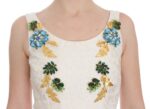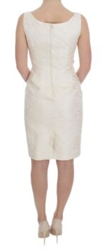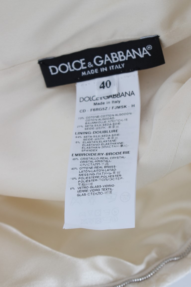 Gorgeous brand new with tags, 100% Authentic Dolce & Gabbana white floral brocade Sicily crystal brooches sheath dress.