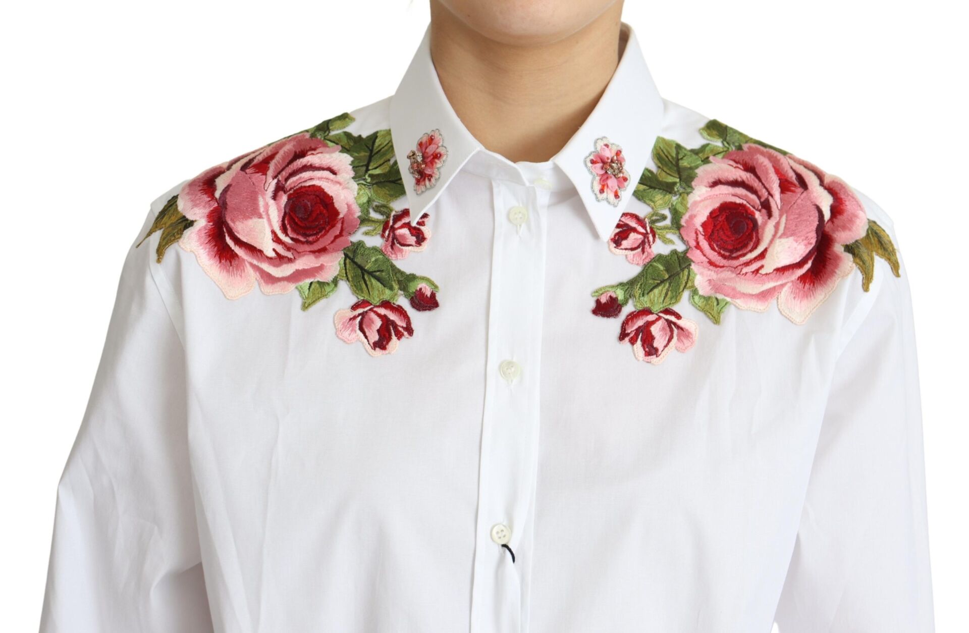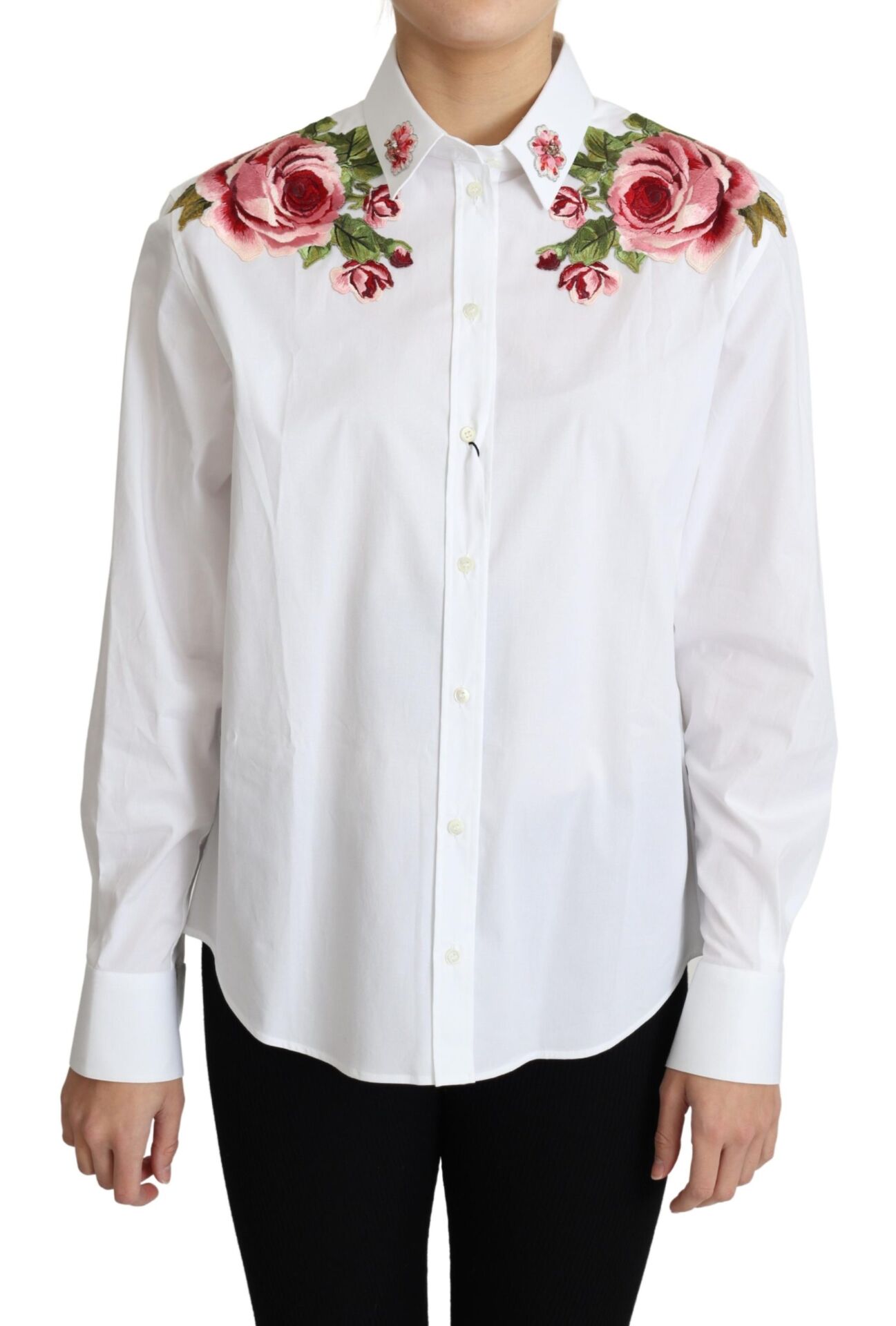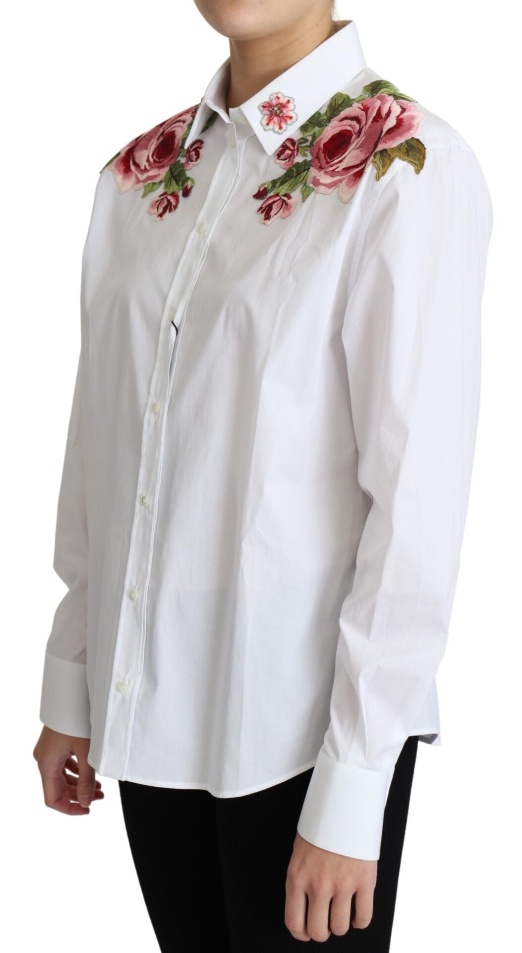 Gorgeous brand new with tags, 100% Authentic Dolce & Gabbana introduces flower embroidery shirts. The clear white is accented with rose embroidery.