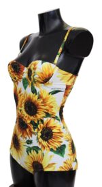 White Sunflower One Piece Swimwear Swimsuit Bikini