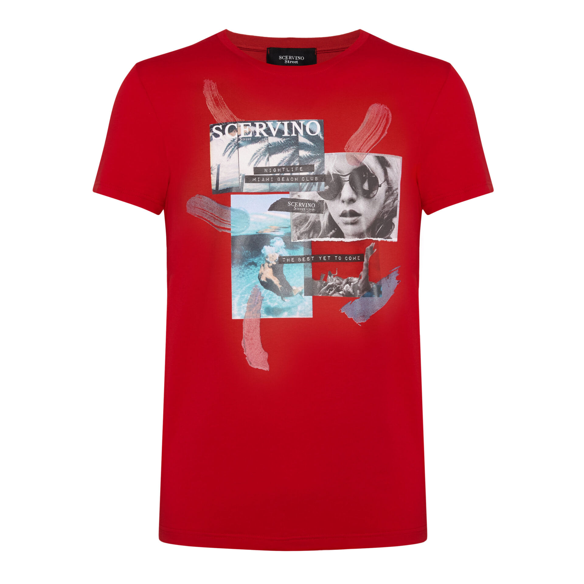 Scervino Street t-shirt, 100% cotton made, red color, brand stamp on the front part. Made in Italy.